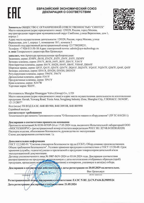 近日,上海雙高閥門(集團)有限公司順利通過了俄羅斯、白俄羅斯、哈薩克斯坦、亞美尼亞、吉爾吉斯斯坦等五國海關聯盟EAC認證,標志著雙高閥門產品在國際市場上的認可度進一步提升!